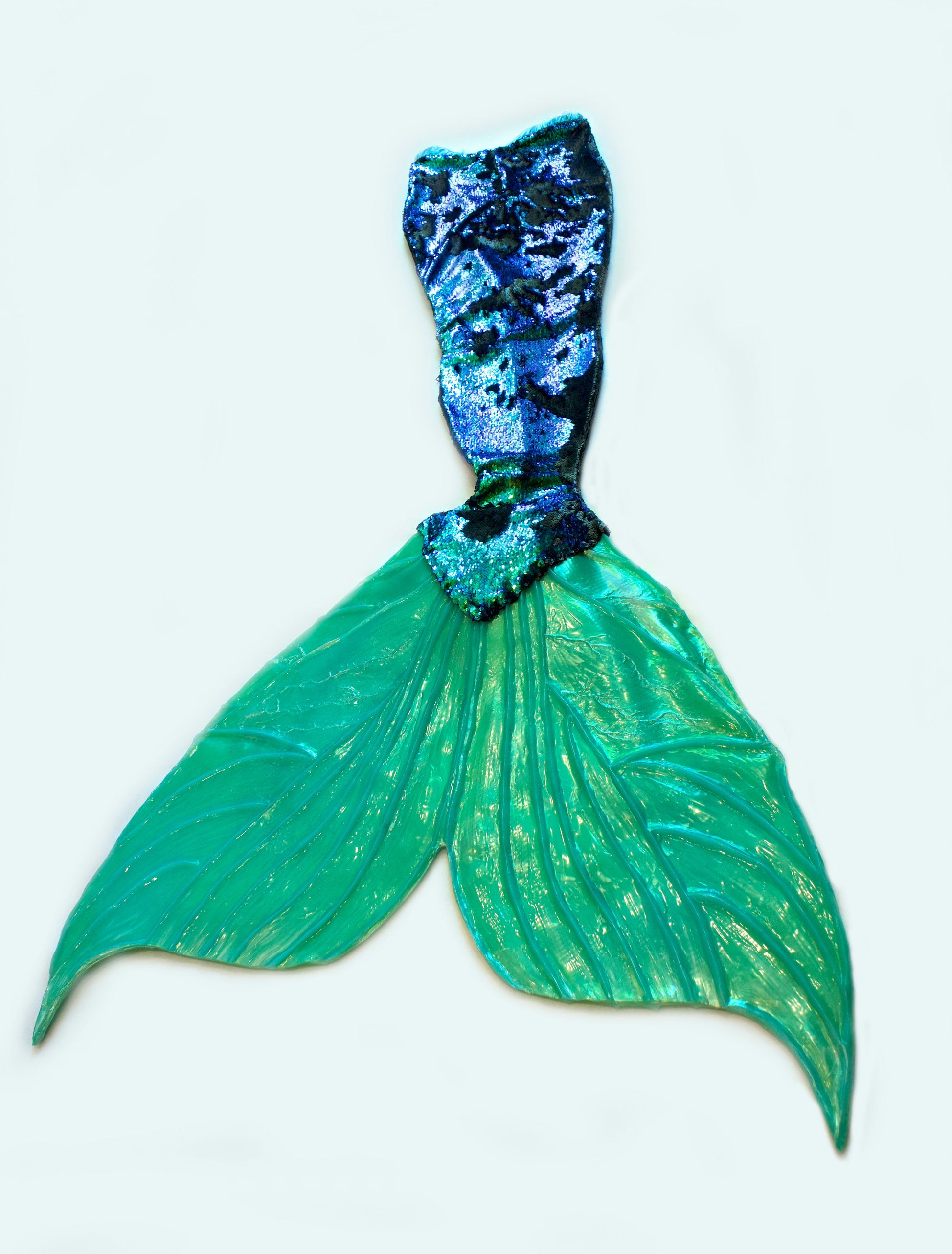 Professional hybrid mermaid tail in sequins and silicone, caudal fin completely in silicone (dragon skin)