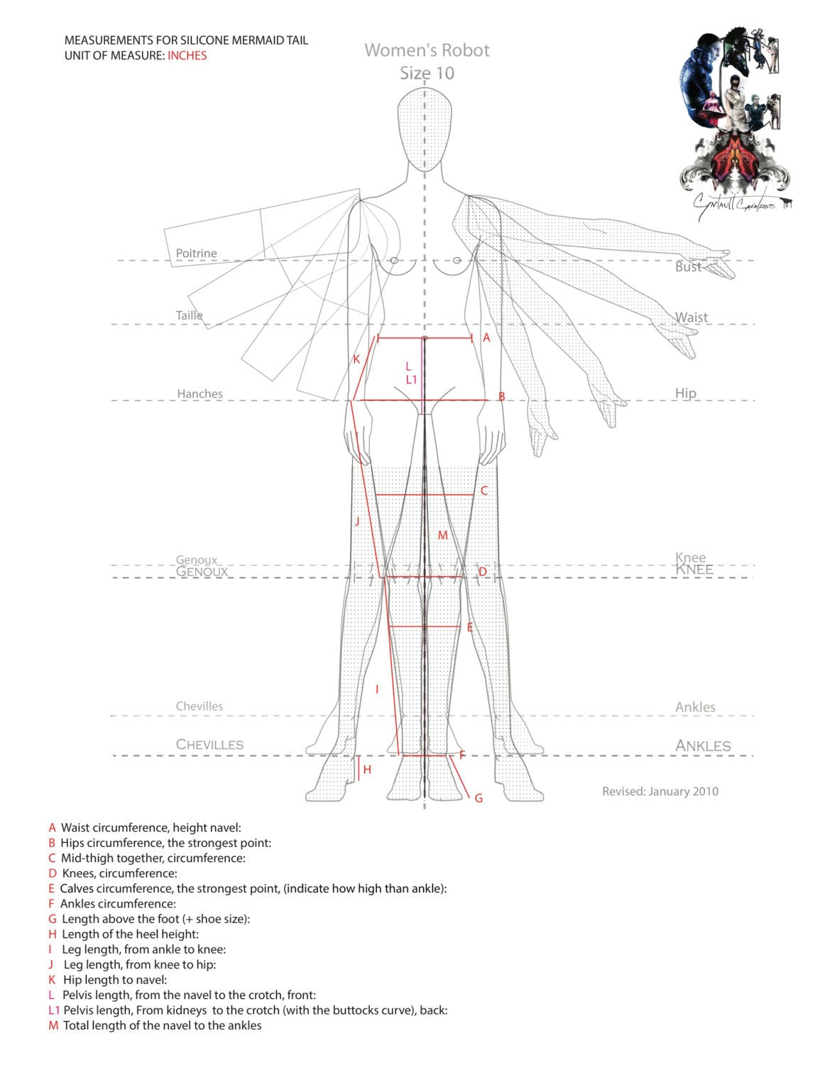 - Body (hips and legs) in silicone scales reinforced with powermesh;