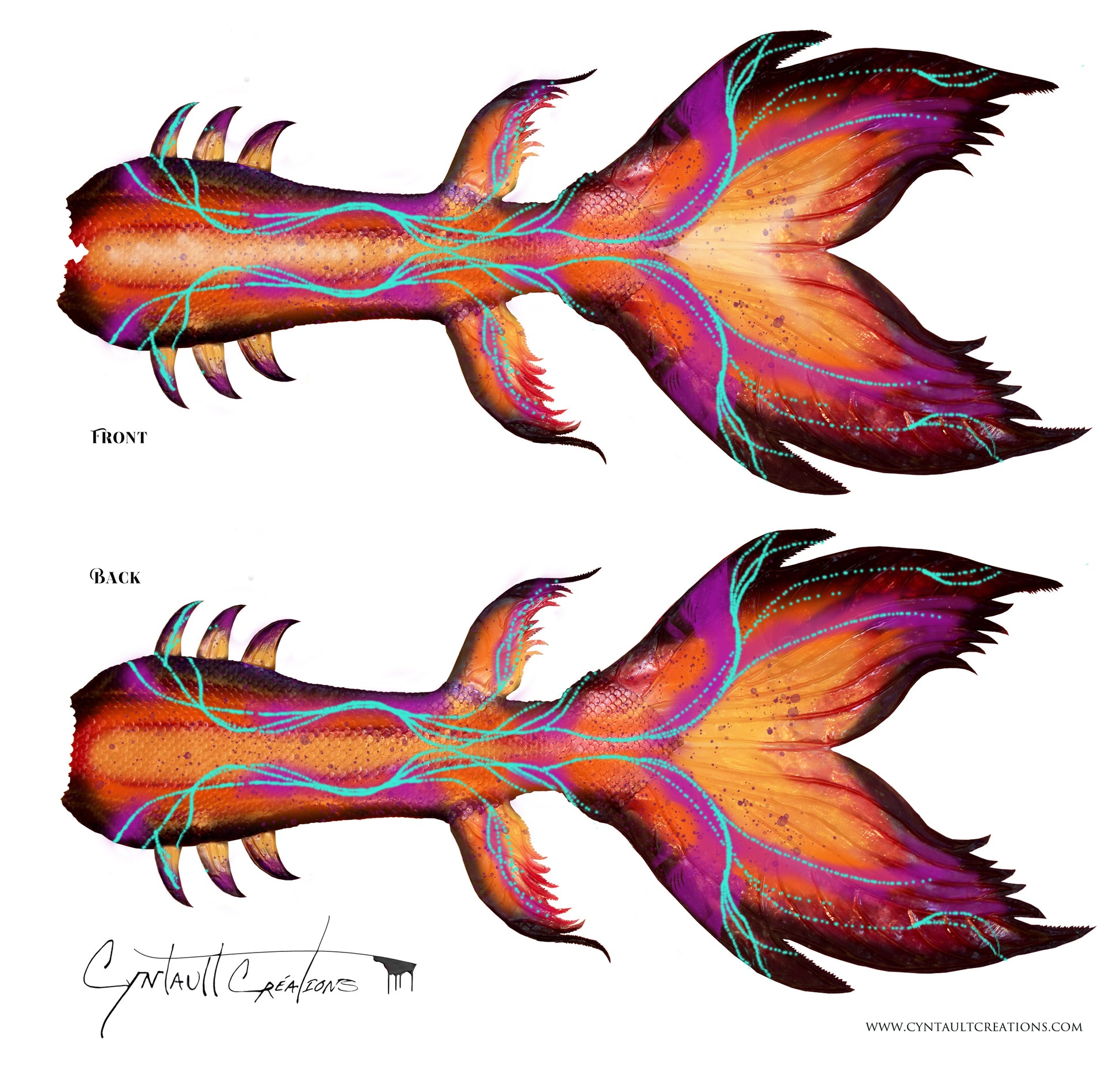 - Body (hips and legs) in silicone scales reinforced with powermesh; A very large caudal fin with serrated finish (40 inches wide by 45 inches long) with a professionnal monofin; 2200 USD = 2967 CAD
