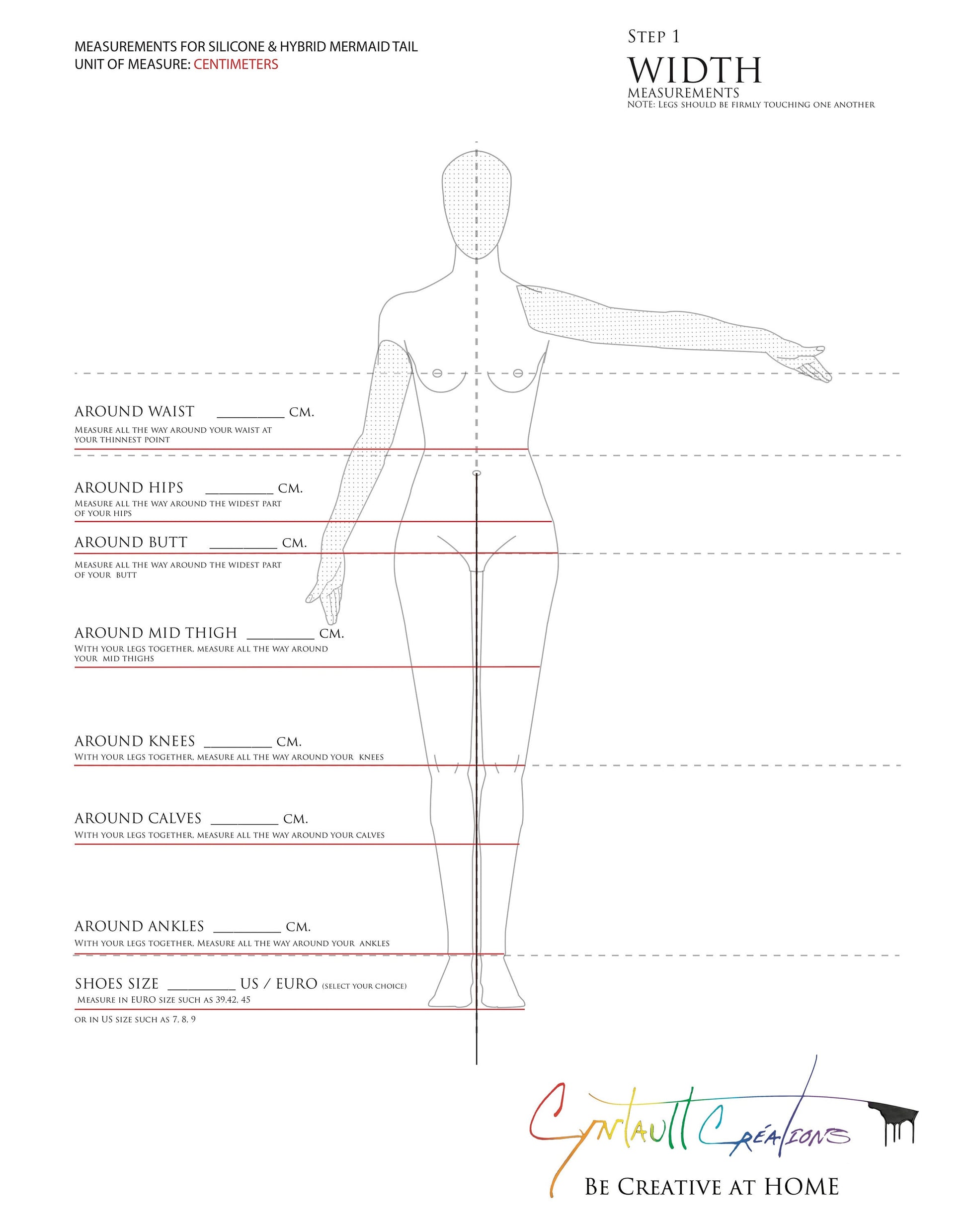 - The size of the caudal fin is very large: 40 inches wide by 45 inches long (It's very big and gives a very organic and fluid effect underwater!) Delivery charges in excess. Made to order only; I just need your measurements. You must complete the measurements sheets and return them to me. You can send me inspirational photos and personalize it!